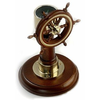 Mini-Steering-Stand with Compass, height 10 cm, mahagony stained Wood, height 16 cm