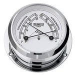 Chromed Yacht Comfortmeter compromising a Thermometer and a Hygrometer. Solid Brass Case, white dial.